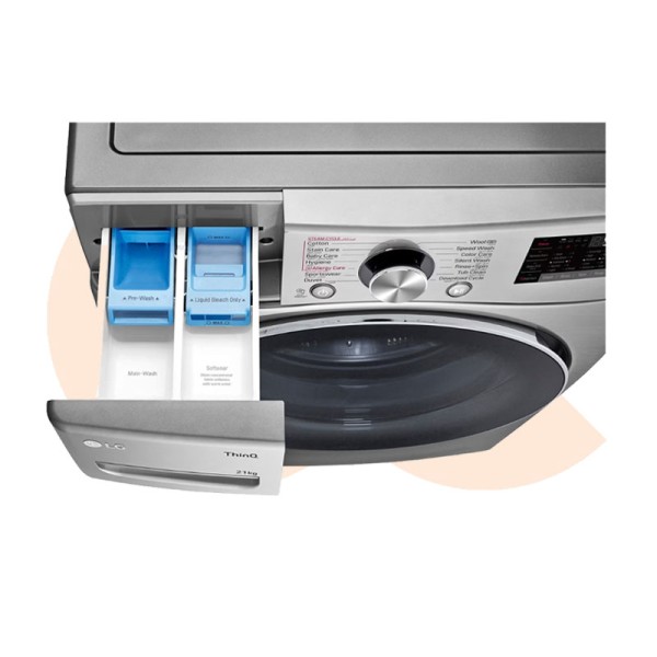 • LG Steam Washing Machine Silver 21 KG with (Wi-Fi) Tempered Glass Door Model F0P2CYV2T
